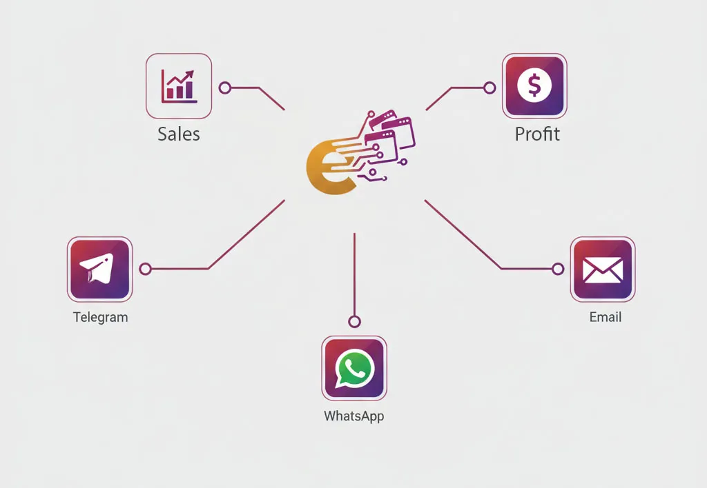 সারাদিনের সেলস, প্রফিট এবং খরচের হিসাব অটোমেটিক আপনার Telegram, WhatsApp বা Email-এ চলে যাবে।