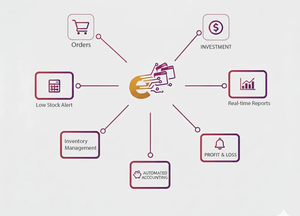 বিজনেসের ইনভেস্টমেন্ট, এক্সপেন্স এবং প্রফিট-লস হিসাব এখন অটোমেটেড। স্টক শেষ হওয়ার আগেই পাবেন স্টোক-অ্যালার্ট নোটিফিকেশন।